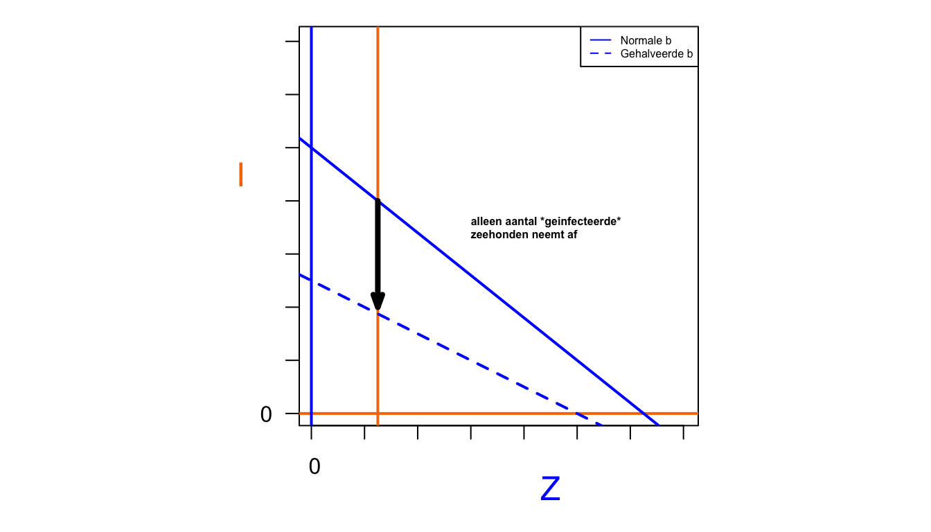 b. Als we alle vatbare individuen tegelijkertijd infecteren, zijn er hierna geen vatbare individuen meer over, waardoor de ziekte zich niet verder kan verspreiden. Het zou dus inderdaad een succesvolle methode kunnen zijn. Aan de andere kant is het natuurlijk niet heel ethisch verantwoord om allemaal mensen moedwillig te infecteren met dit virus.