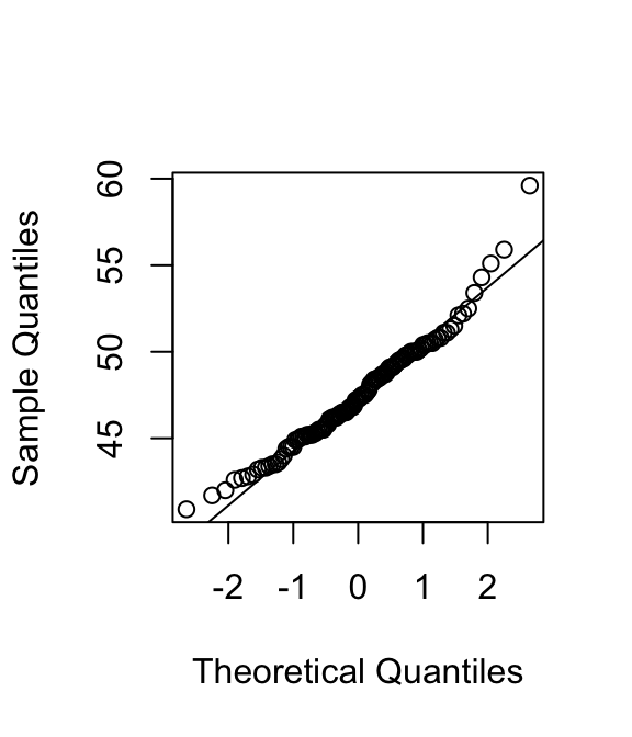 Voeg een QQ-plot toe om te zien of de verdeling van de gegevens sterk afwijkt van een normale verdeling.