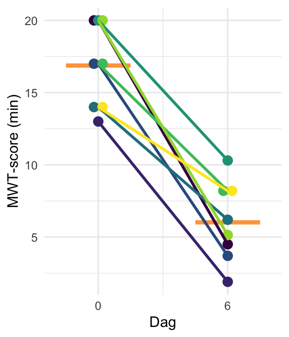 Het statistisch model van de \(t\)-toets voor gepaarde steekproeven veronderstelt dat het Normale Model van toepassing is op de verschillen binnen de gepaarde gegevens.
